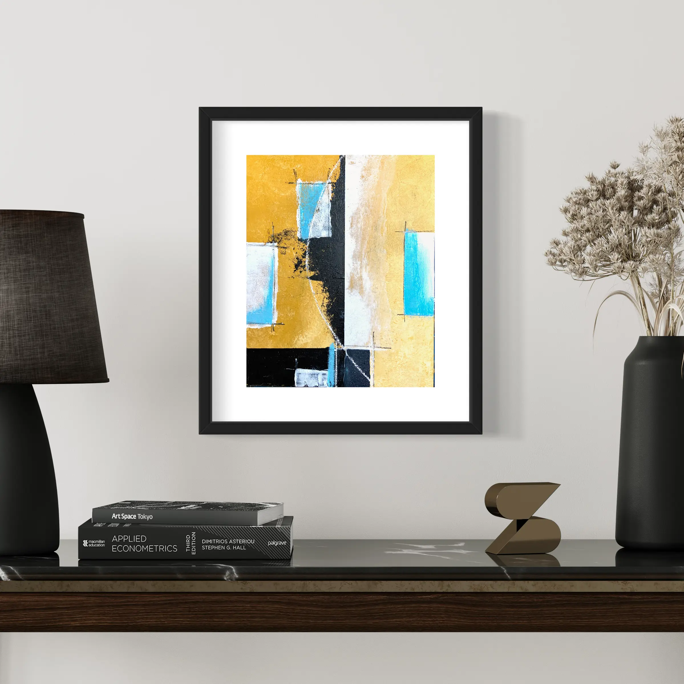 A striking interplay of geometric forms in vivid colours creates a dynamic abstract composition.