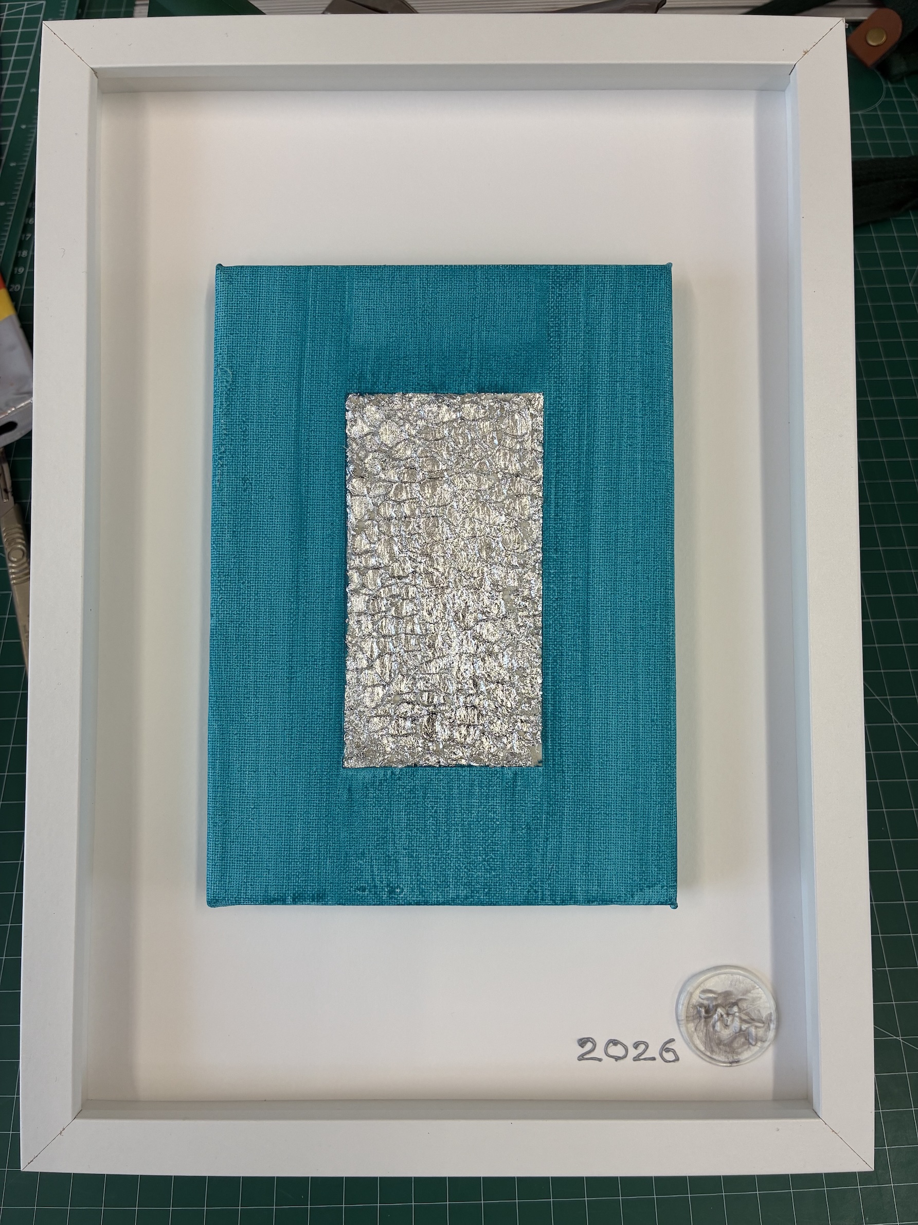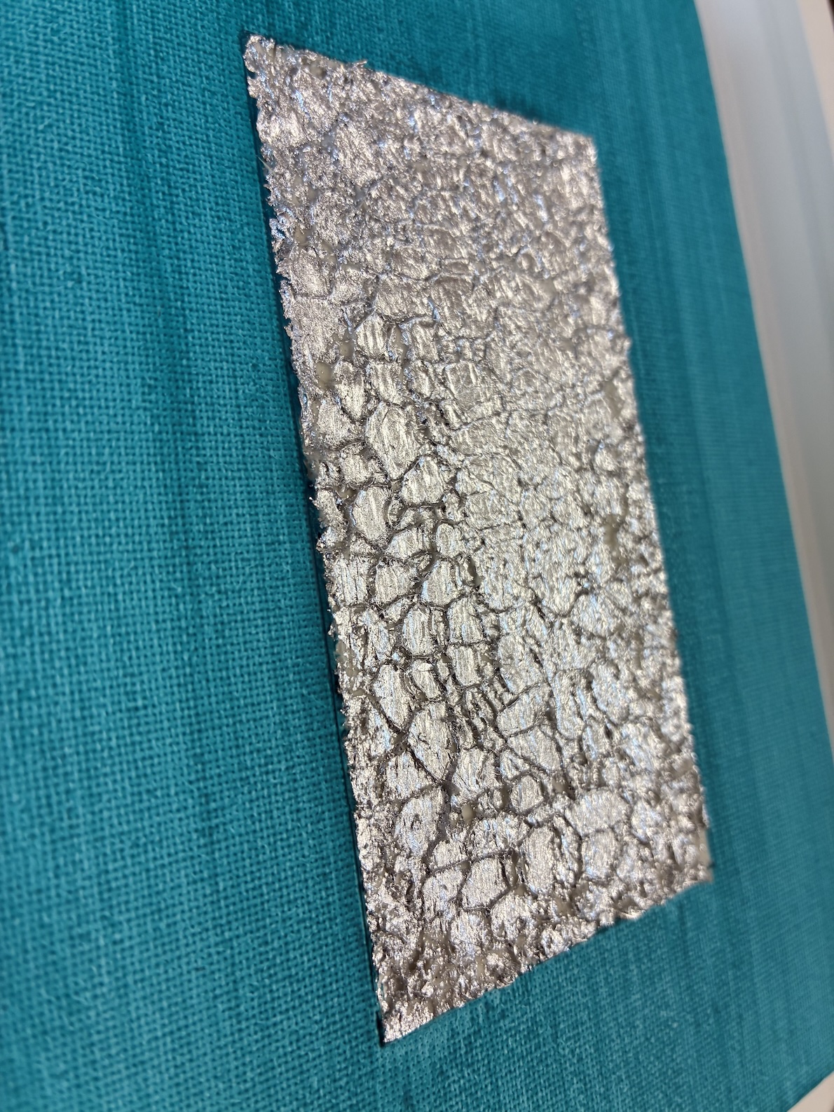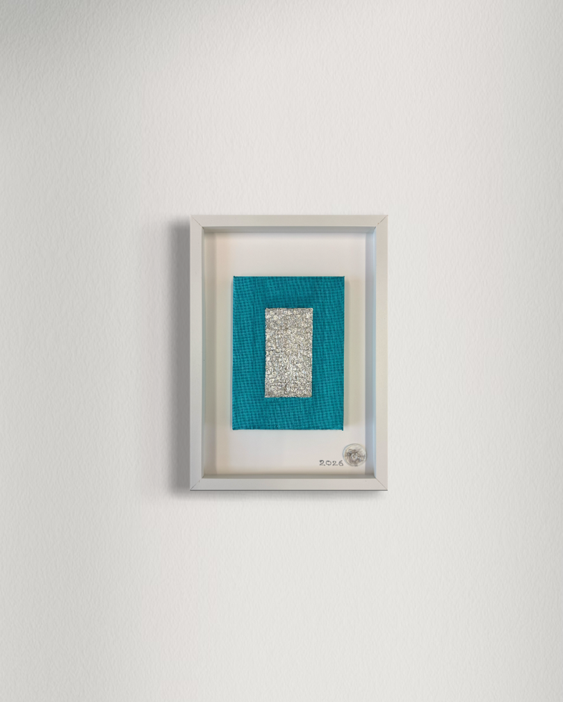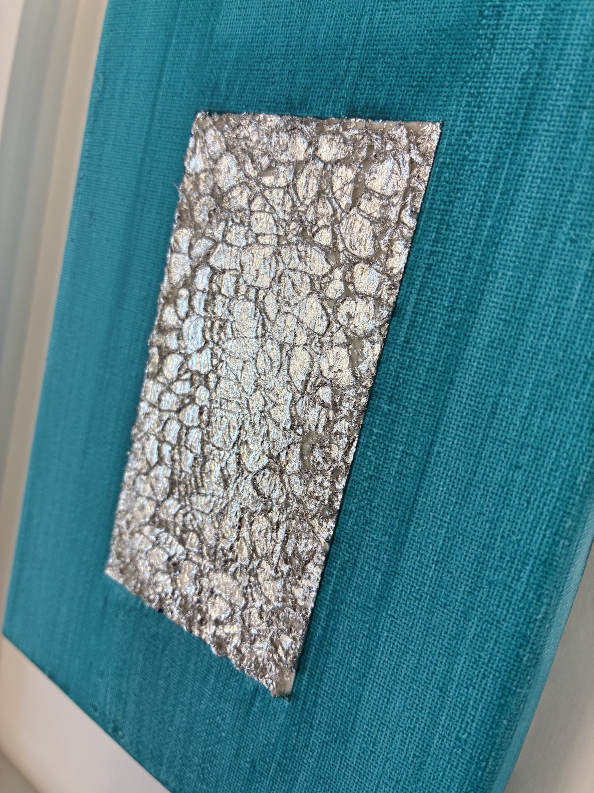A striking exploration of texture and colour, where silver meets turquoise in harmonious abstraction.