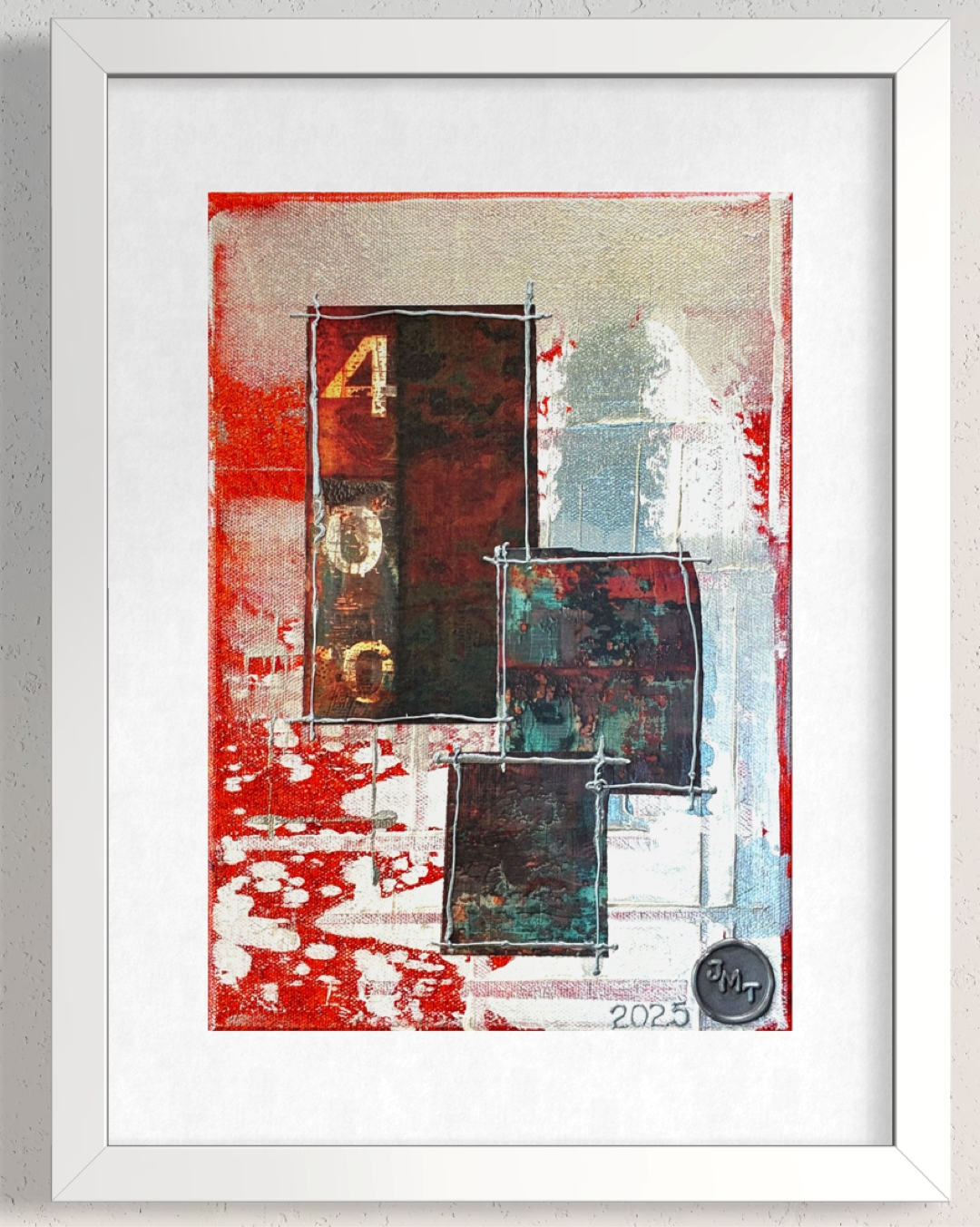 composition filled with vibrant red and intricate patterns