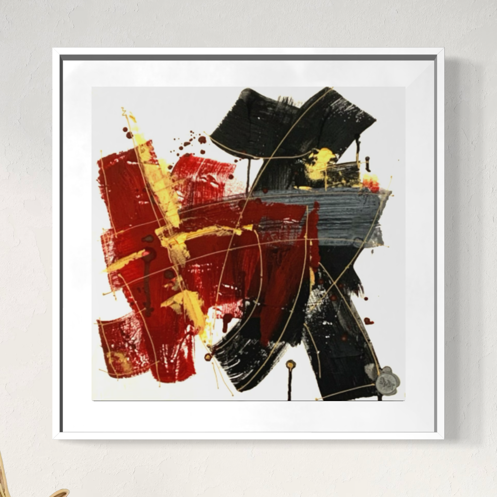 A vibrant dance of red and black brushstrokes, capturing movement and energy.
