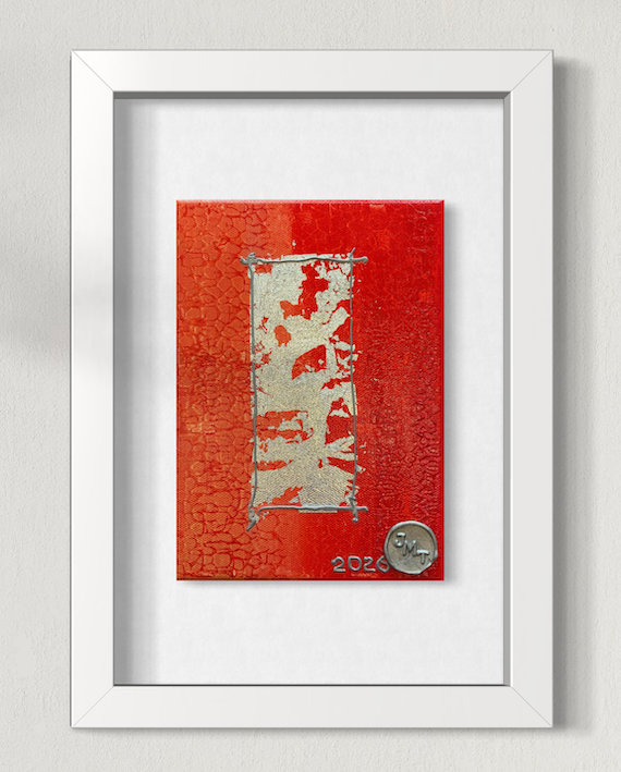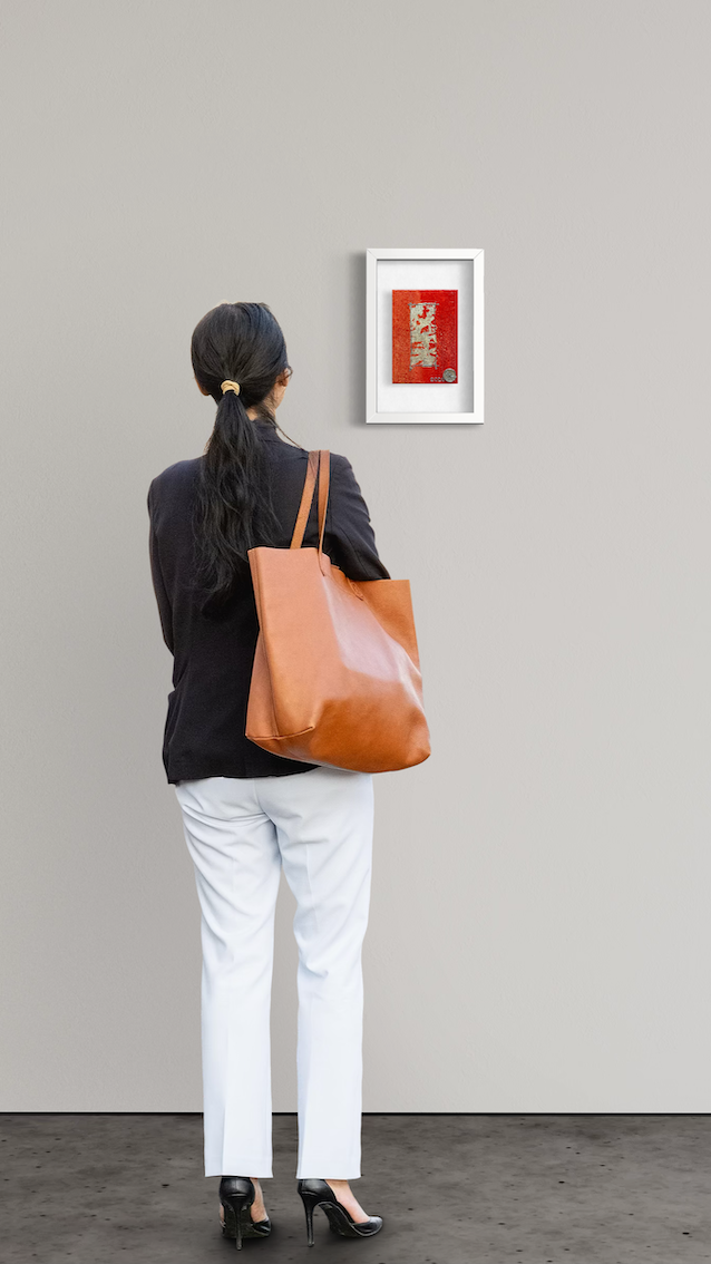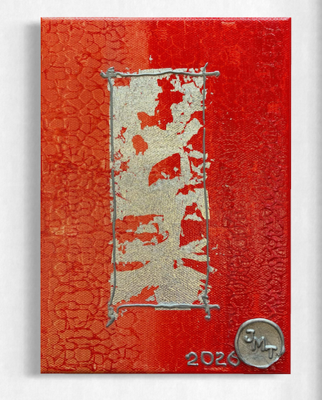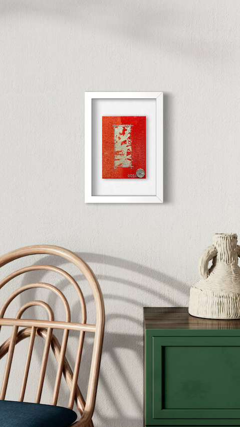 A vibrant red canvas showcases textured patterns, hinting at time’s impact and hidden histories.